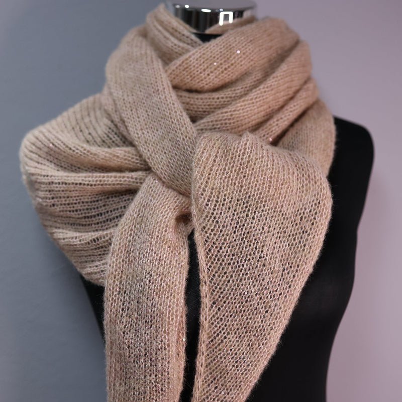 Tragen Sie es klassisch über den Schultern, lässig um den Hals oder elegant über einem Kleid. Das sanfte Altrosa verleiht jedem Look Wärme und Raffinesse.