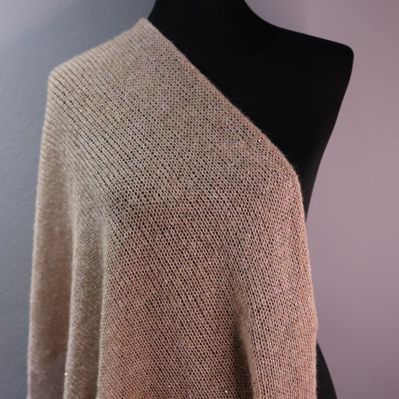 Entdecken Sie zeitlose Eleganz mit diesem handgestrickten Dreieckstuch in Altrosé. Die exquisite Mischung aus Alpaka, Seide und Kaschmir bietet unvergleichliche Weichheit und Wärme, während feine Mini-Pailletten aus Lyocell einen subtilen Glanz verleihen. Perfekt für jeden Anlass – dieses Accessoire verwandelt jedes Outfit in ein Statement der Raffinesse und Qualität.