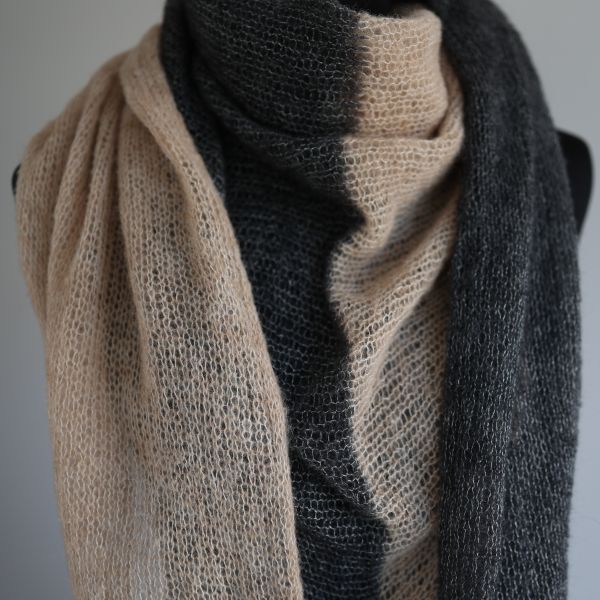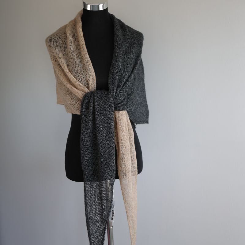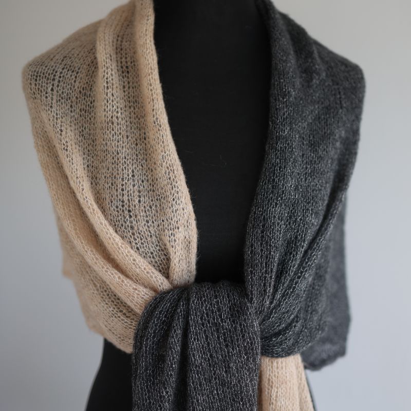 Luxuriöses Dreieckstuch aus Baby-Alpaka, Seide und Kaschmir Beige - Anthrazit