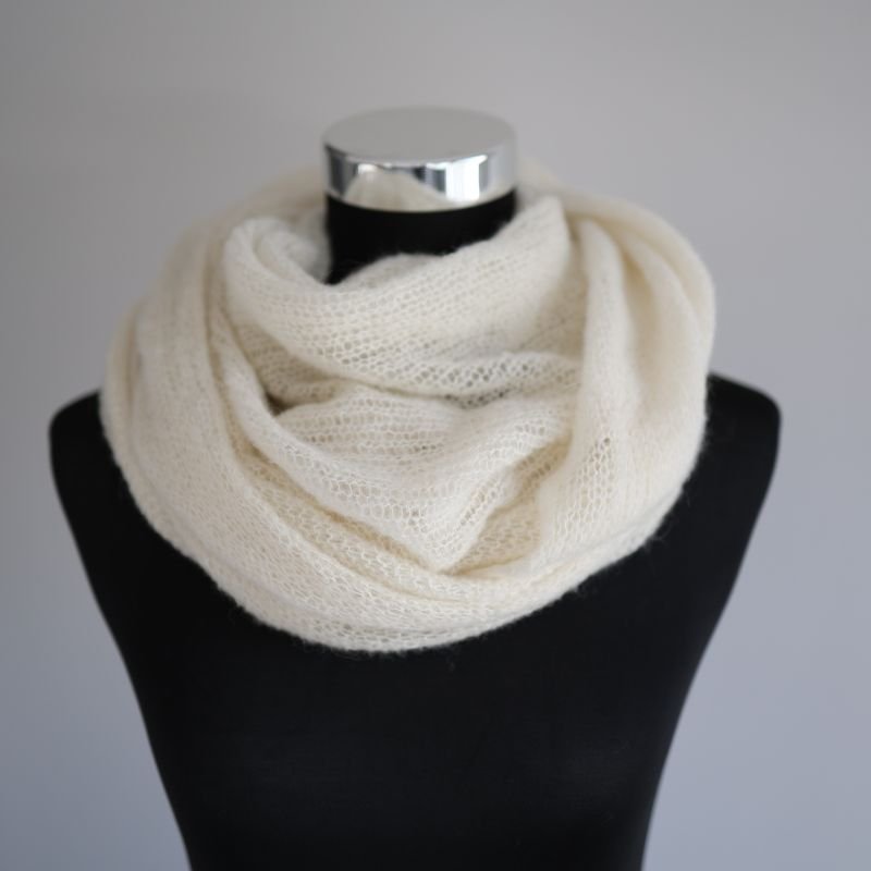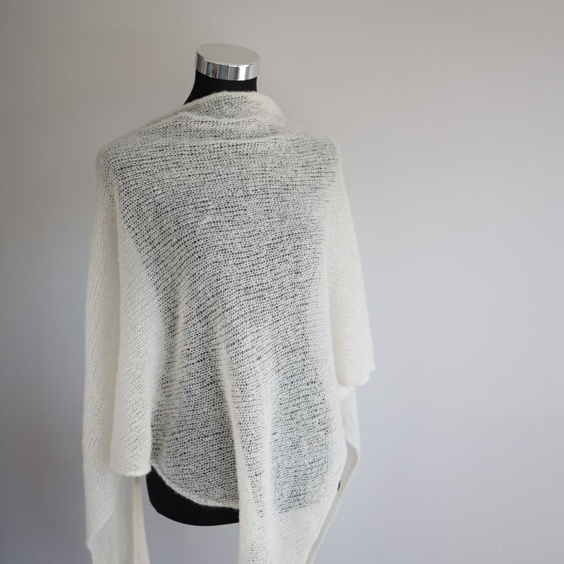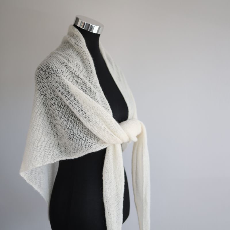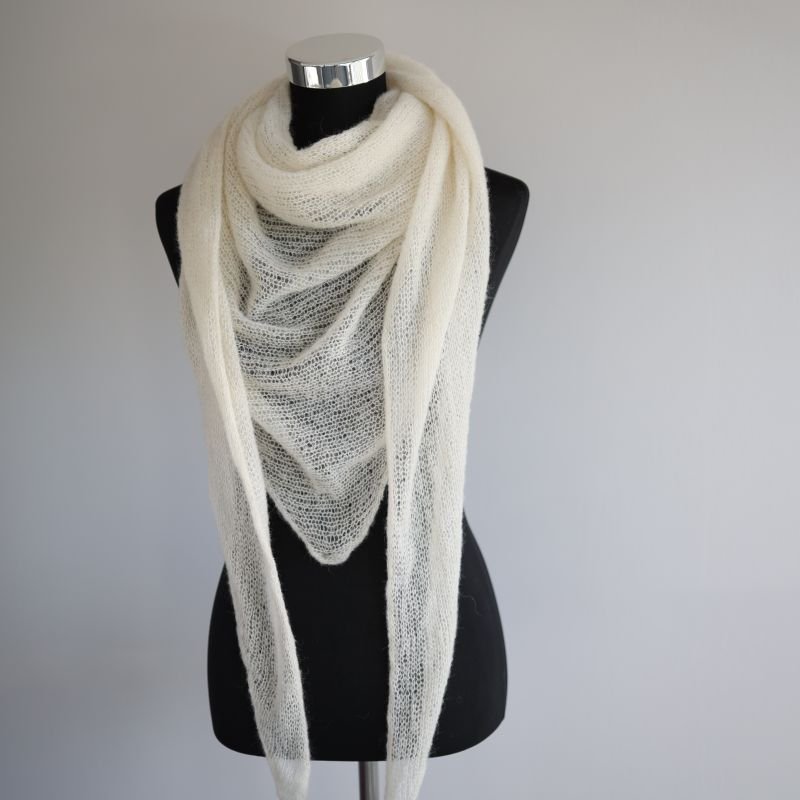 Zeitloses Dreieckstuch aus Baby-Alpaka, Seide und Kaschmir in Naturweiß
